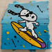 Die Künstlerin verwendete Acrylfarben, um dieses kleinformatige Gemälde im Pop-Art-Stil auf Holz zum Thema „Pop-Ikonen“ zu gestalten.