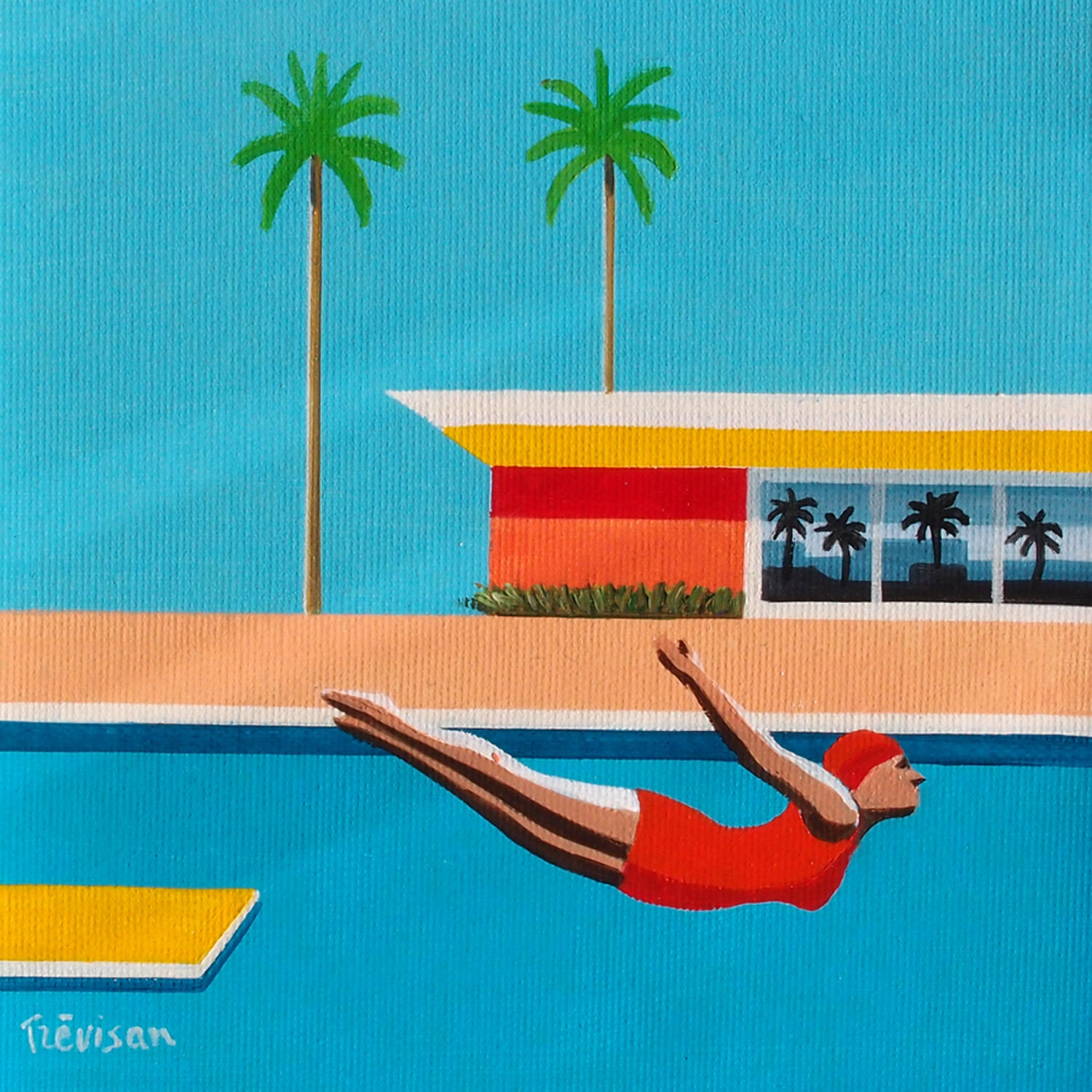 Gemälde Red diver von Trevisan Carlo | Gemälde Pop-Art Architektur Öl