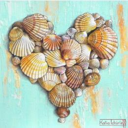 Dieses einzigartige und originelle zeitgenössische Kunstwerk Coeur de coquillages wurde von der zeitgenössischen Künstlerin Tchirieff Katia geschaffen.