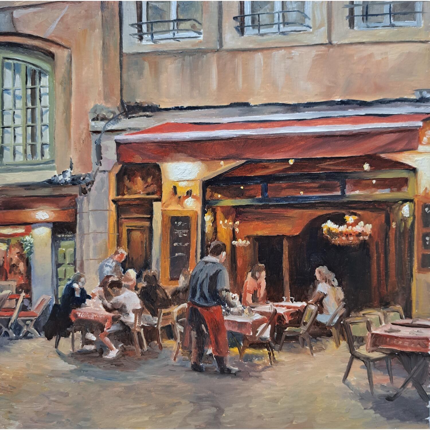 Dieses einzigartige und originale zeitgenössische Kunstwerk "Repas en terrasse " in dem Stil "Realismus" wurde von dem zeitgenössischen Künstler Piffard Cédric kreiert.