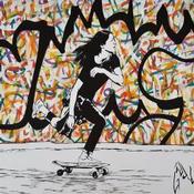 Dieses einzigartige und originelle zeitgenössische Kunstwerk 50x50 cm "SKATER GIRL" wurde von dem zeitgenössischen Künstler Di Vicino Gaudio Alessandro geschaffen.