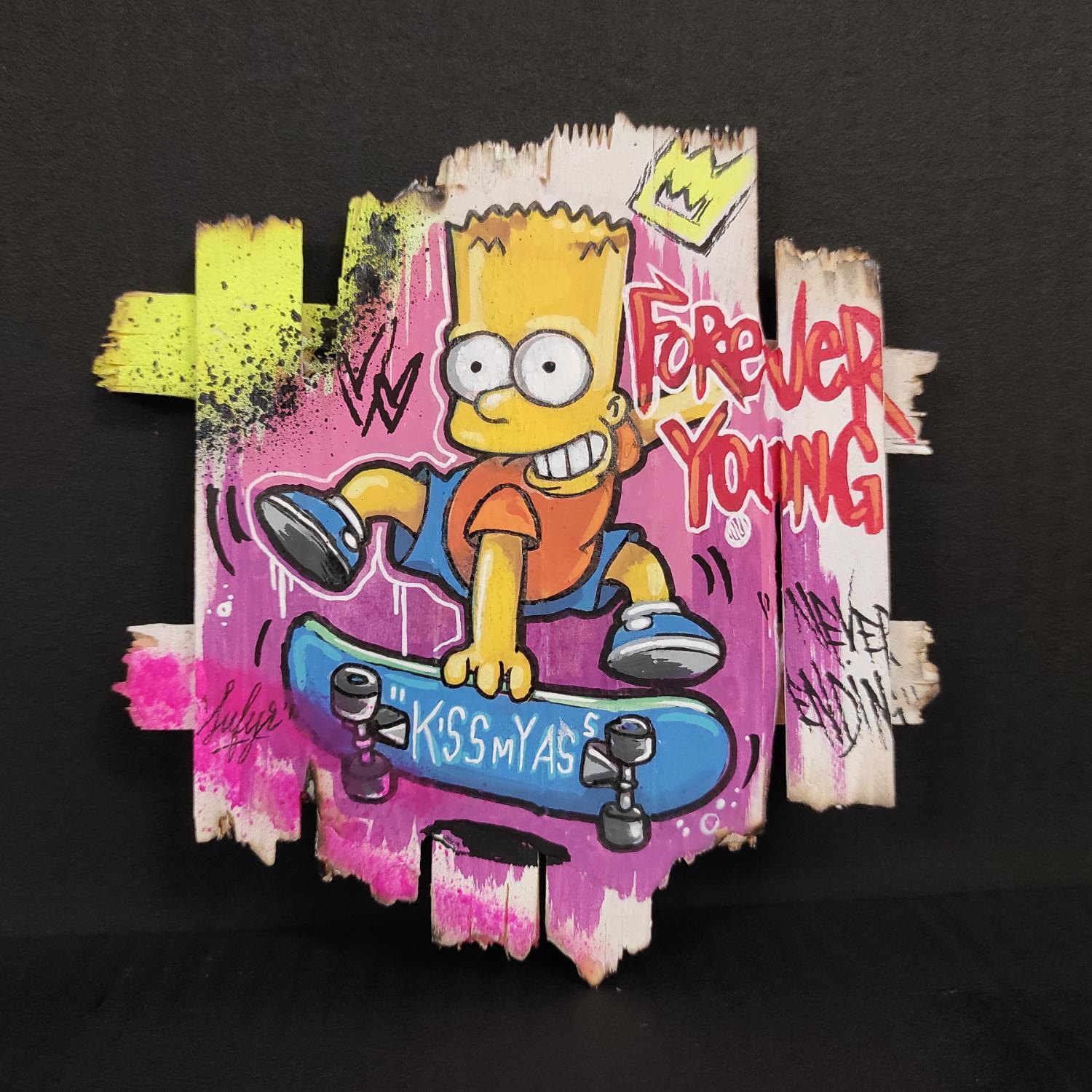 Dieses einzigartige und originelle zeitgenössische Kunstwerk wurde vom zeitgenössischen Künstler Sufyr geschaffen. Der Künstler verwendete Acrylfarben und Collagetechniken, um dieses kleinformatige Gemälde im Street-Art-Stil auf Holz und Karton zu schaffen. Ultra-glänzendes Finish dank Autolack!