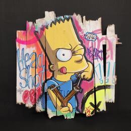 Dieses einzigartige und originelle zeitgenössische Kunstwerk wurde vom zeitgenössischen Künstler Sufyr geschaffen. Der Künstler verwendete Acrylfarben und Collagetechniken, um dieses kleinformatige Gemälde im Street-Art-Stil auf Holz und Karton zu schaffen. Ultra-glänzendes Finish dank Autolack!
