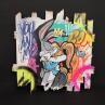 Dieses einzigartige und originelle zeitgenössische Kunstwerk wurde vom zeitgenössischen Künstler Sufyr geschaffen. Der Künstler verwendete Acrylfarben und Collagetechniken, um dieses kleinformatige Gemälde im Street-Art-Stil auf Holz und Karton zu schaffen. Ultra-glänzendes Finish dank Autolack!