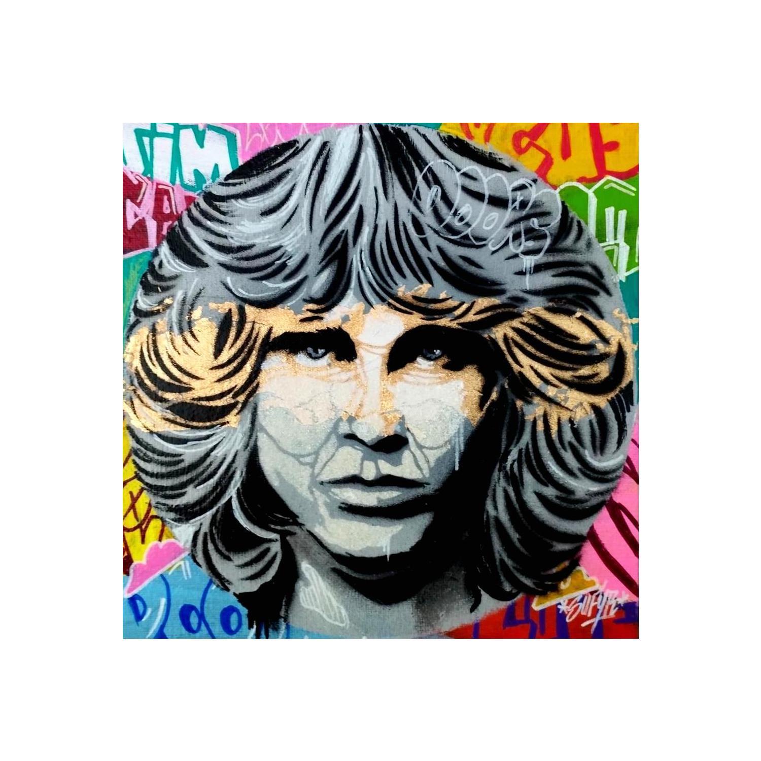 Dieses einzigartige und originelle zeitgenössische Kunstwerk "Jim Morrison" wurde von dem zeitgenössischen Künstler Sufyr geschaffen.