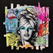 Gemälde Bardot sur la plage abandonnée von Sufyr | Gemälde Street art Pop-Ikonen Graffiti Posca