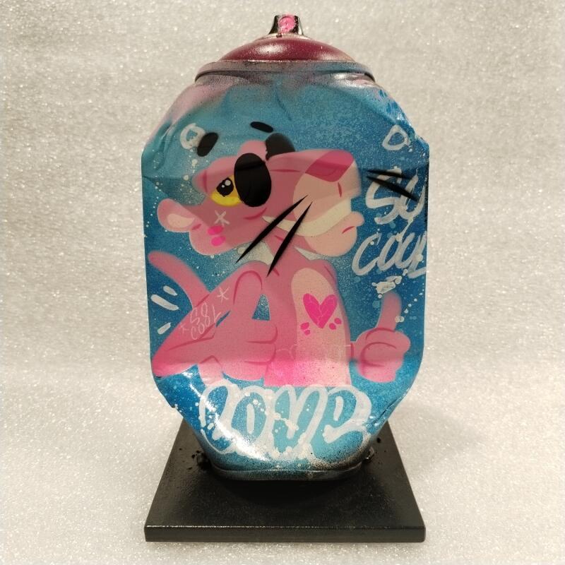 Der Künstler verwendete Acryl, Graffiti auf Leinenkarton, um diese Kleine Skulptur zum Thema "Pop-Ikonen" anzufertigen.