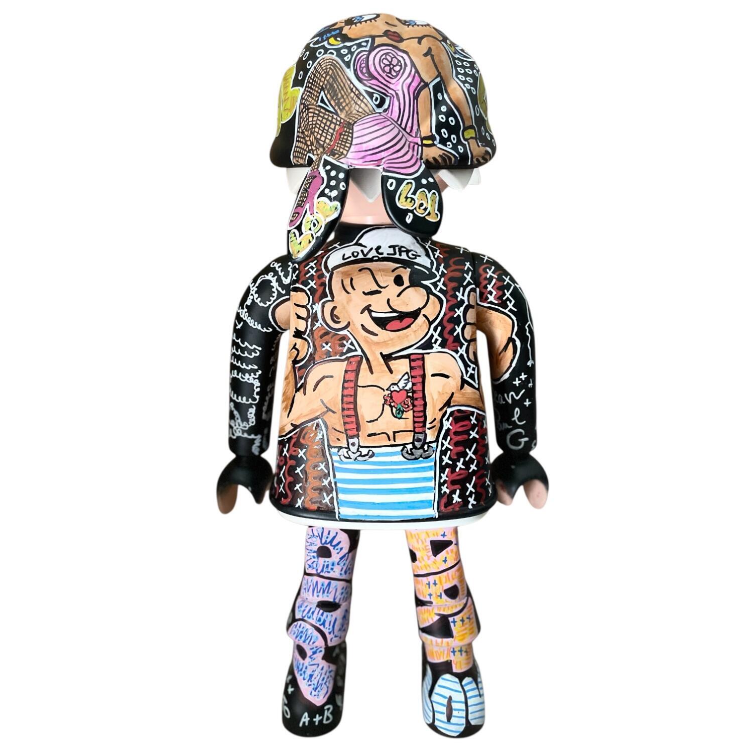 Skulptur PLAYMOBIL XXL Jean-Paul GAULTIER  von Frany La Chipie | Skulptur Pop-Art Pop-Ikonen Graffiti Posca