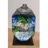 Der Künstler verwendete Graffiti, Acryl auf Leinenkarton, um diese Kleine Skulptur zum Thema "Pop-Ikonen" anzufertigen.