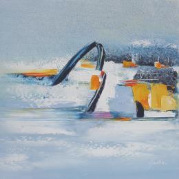 As a child, Dominique drew instinctively. As a teenager her notebooks were filled with her artwork. Convinced that art was her calling, she attended the School of Fine Arts as preparation for the entrance exams into the Decorative Arts School of Geneva. She trained there as an interior designer before turning to commercial art and cartoons. At the time, Dominique created meticulous figurative works with a brush and acrylics, directly inspired by architectural drawings. But this rigor did not suit her, and her work evolved towards the abstract. For many years she taught painting classes in Avoriaz where she participated in the creation of art workshops at the resort. She later organised many workshops in Haute Savoie before creating her own gallery in Thonon-lesBains.