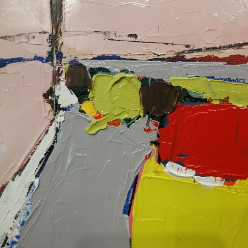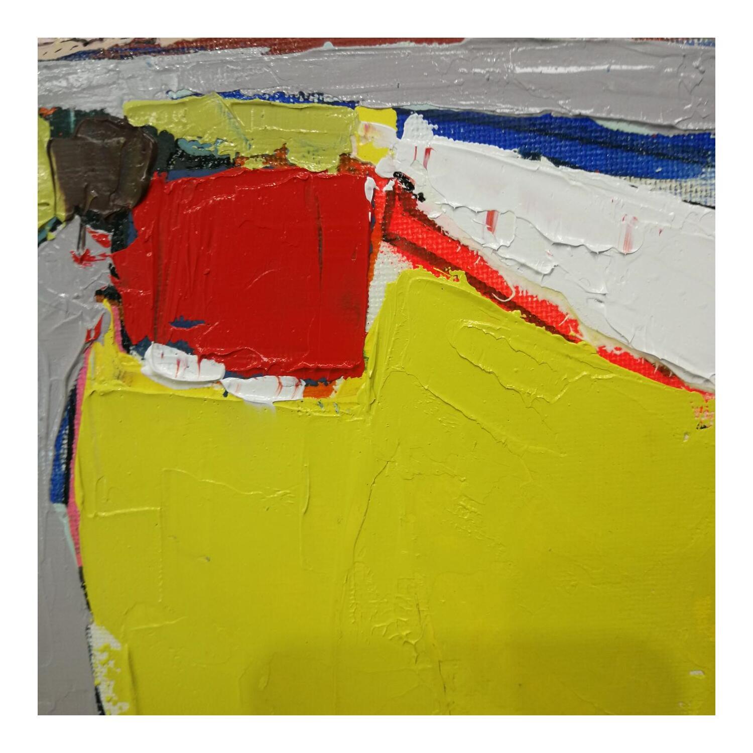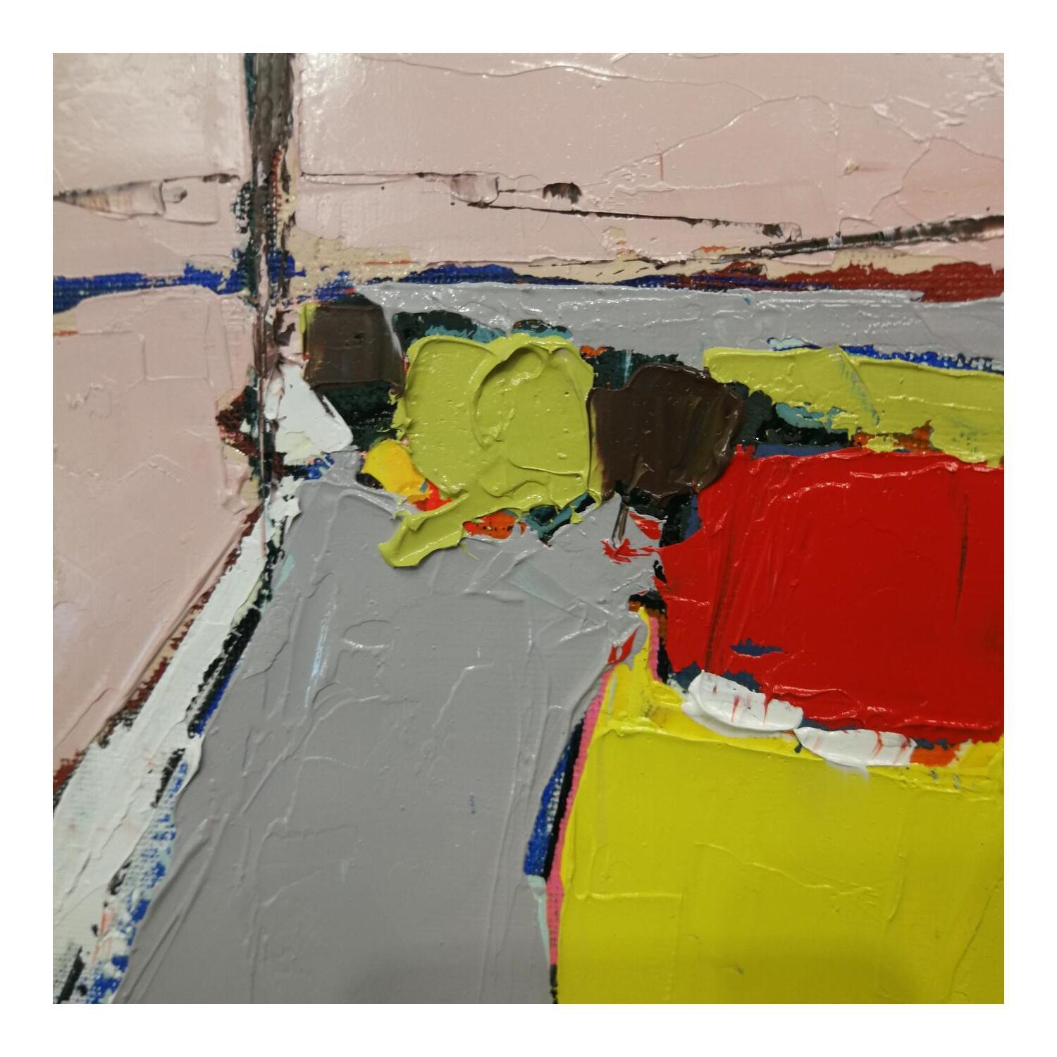 The artist used Oil medium on Canvas board to create this Abstract, Small size painting.