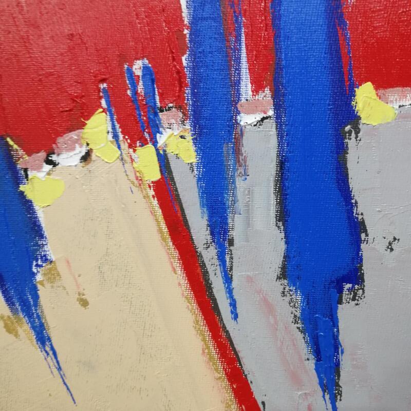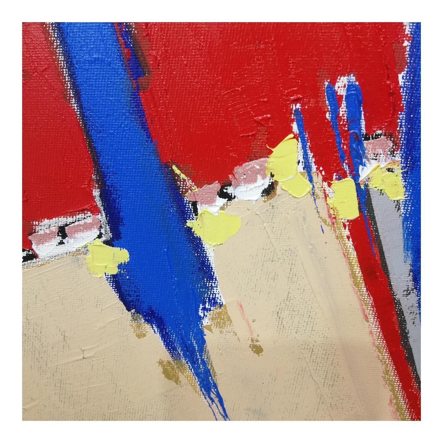 The artist used Oil medium on Canvas board to create this Abstract, Small size painting.