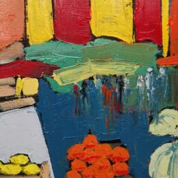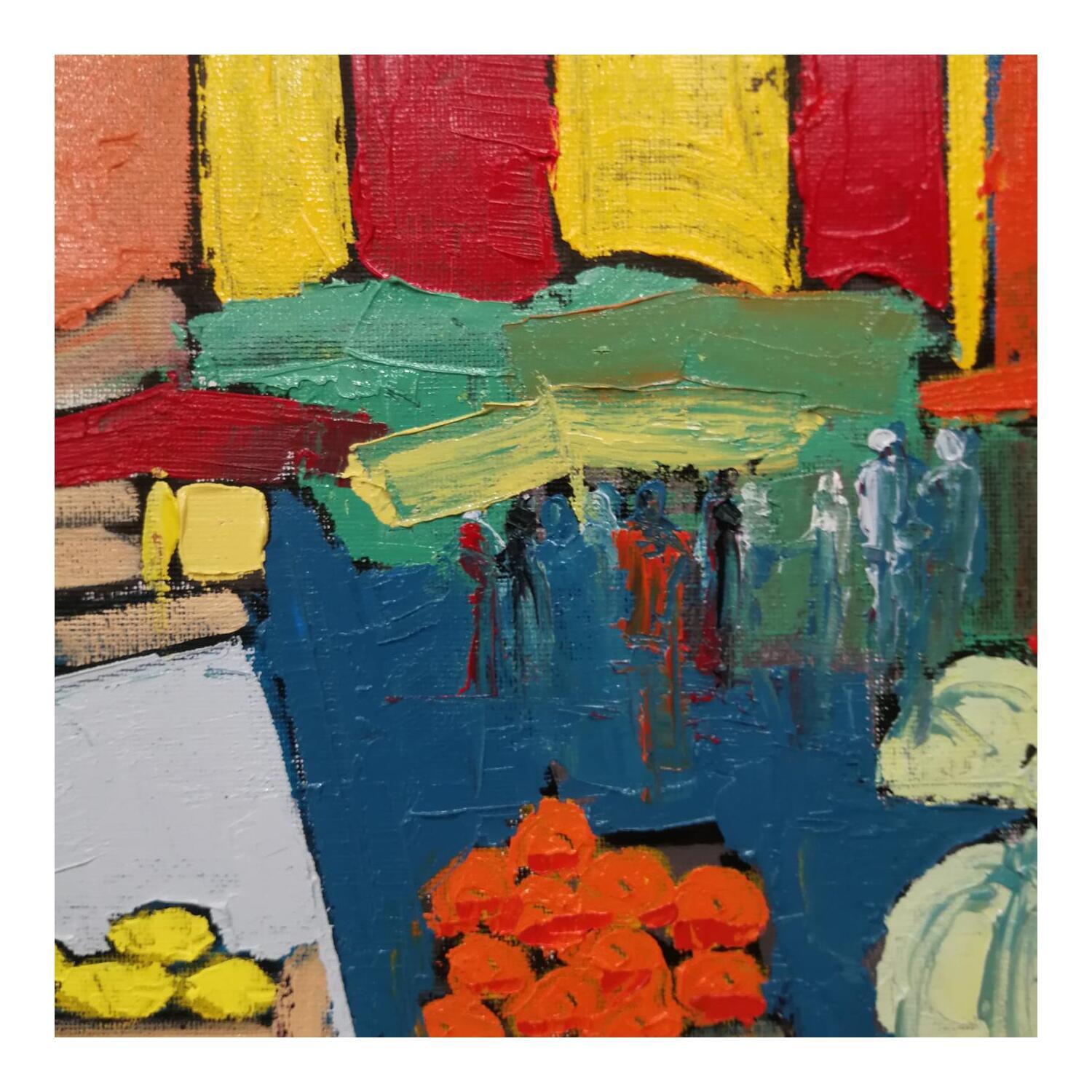 This unique and original contemporary artwork "SCENE DE MARCHE" on the subject of Life style has been created by the contemporary artist L'huillier Françis.