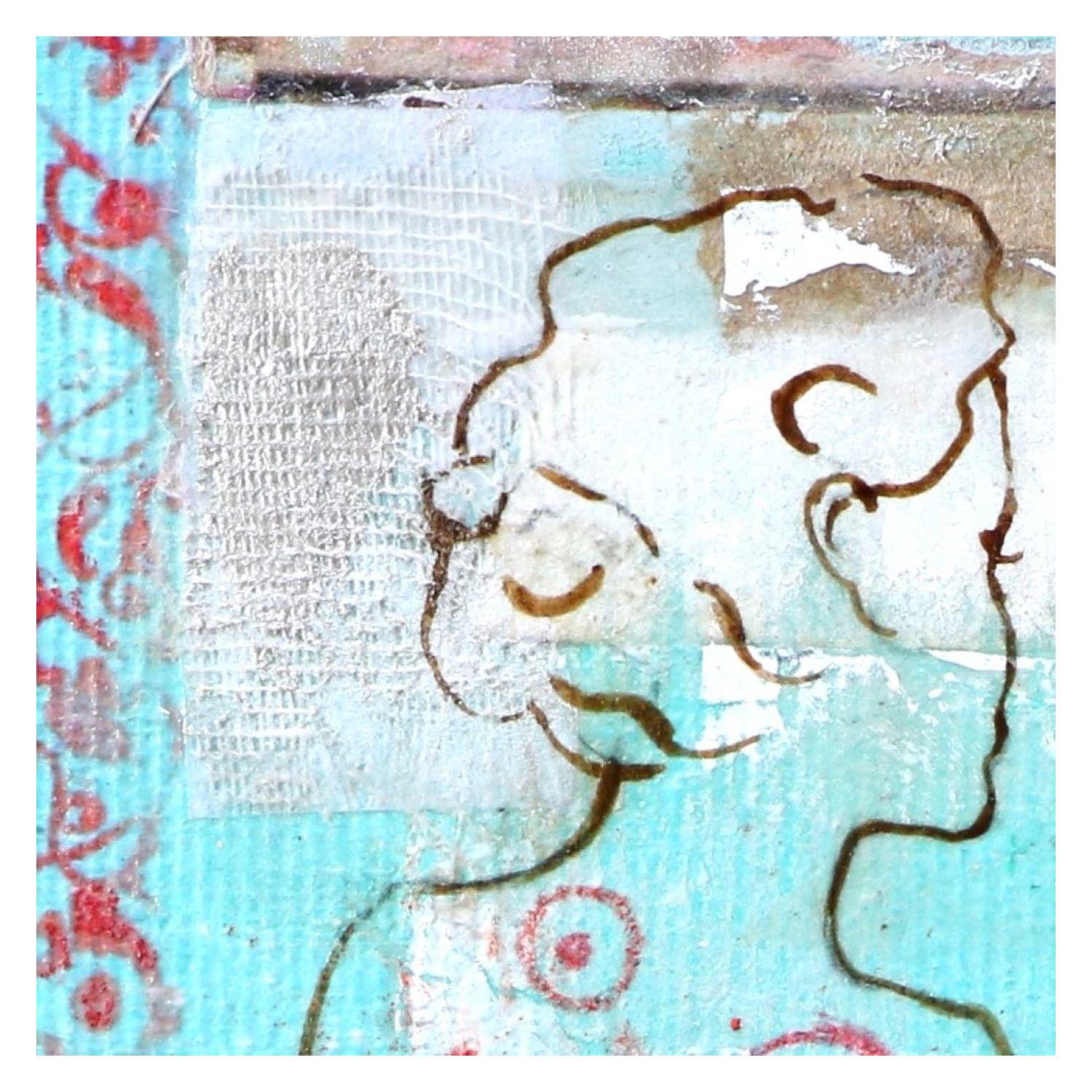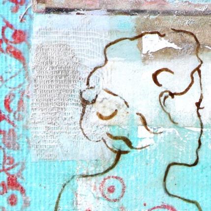 Painting Moka bleu by Sablyne | Painting Figurative Life style Wood Cardboard Acrylic Gluing Ink Pastel Gold leaf Upcycling Paper