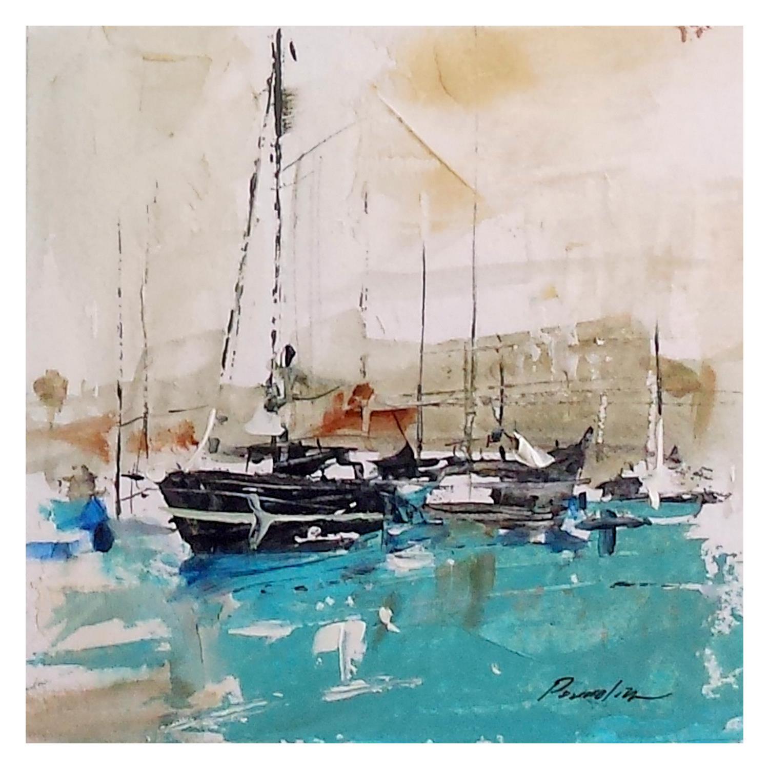 This unique and original contemporary artwork "la rade" on the subject of Marine has been created by the contemporary artist Poumelin Richard.