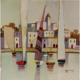 This unique and original contemporary artwork "La voile mauve AO71" on the subject of Marine has been created by the contemporary artist Burgi Roger.