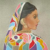 This unique and original contemporary artwork "Samira" on the subject of Portrait has been created by the contemporary artist Rosângela.