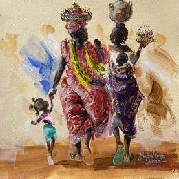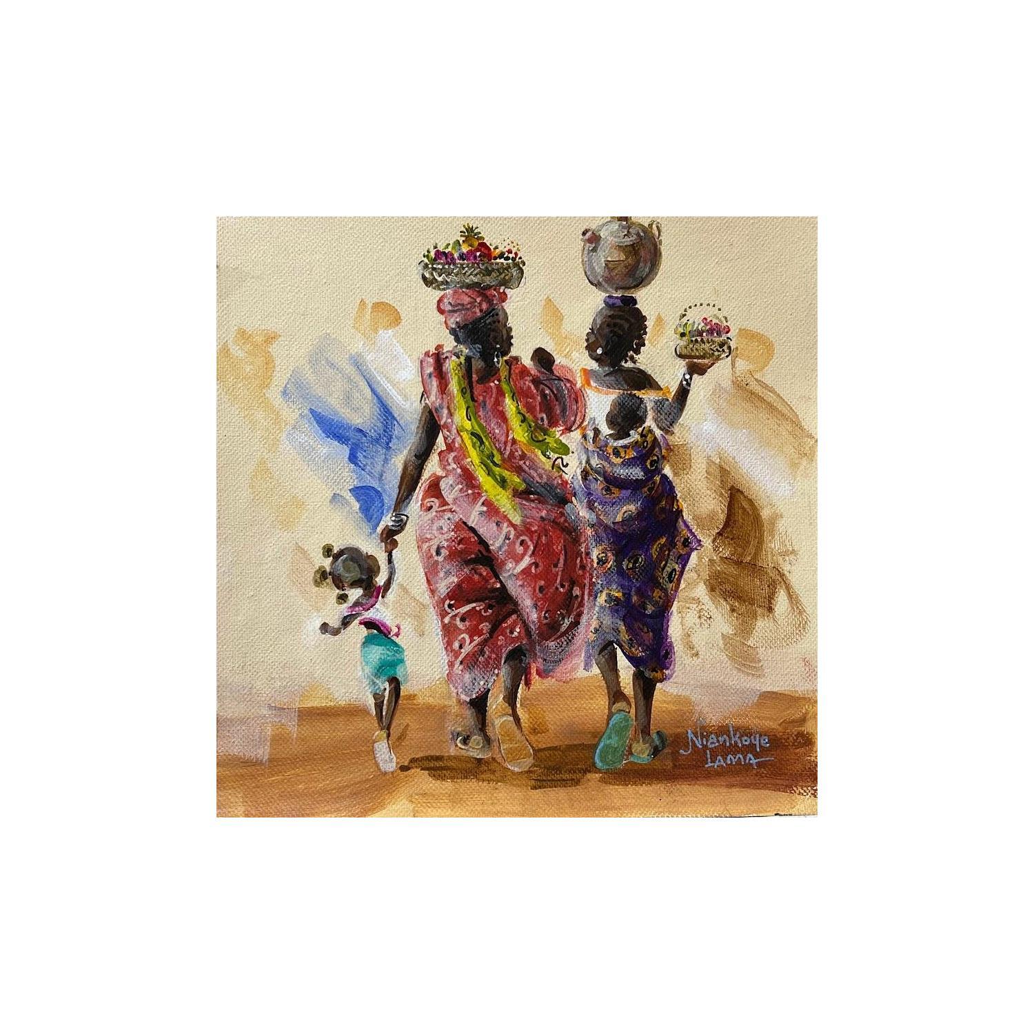 This unique and original contemporary artwork "Deux Dames et Enfants" on the subjects of Urban, Life style has been created by the contemporary artist Lama Niankoye.