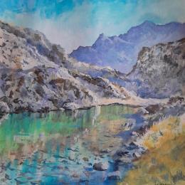 This unique and original contemporary artwork "Lac Merlat Belledonne" on the subject of Urban has been created by the contemporary artist Lallemand Yves.