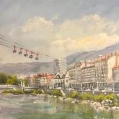 This unique and original contemporary artwork "Les bulles volant eu dessus de Grenoble" on the subject of Urban has been created by the contemporary artist Lallemand Yves.