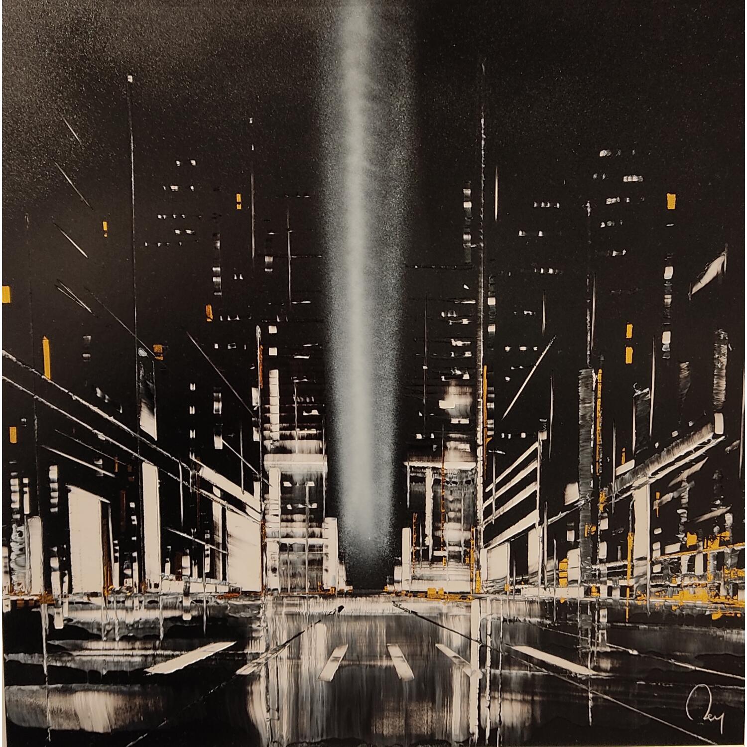 Although he has achromatopsia (absence of color vision), Julien Rey takes us on a journey through his paintings to urban landscapes. Julien Rey's story begins like all great stories: with an impossible dream. With achromatopsia, the artist sees only in black and white. Yet, this condition did not prevent him from traveling to the borders of Burma, from changing his life (he became a Buddhist monk there) or from embarking on art. From his trip to Burma, he brought back a perfect mastery of gold leaf, a characteristic element of his work. His technique based on lacquer worked with a knife and gold leaf inlays places light at the center of his works. Marked by Zen philosophy, he creates minimal compositions that appear as suspended moments, poetic pauses.