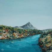 This unique and original contemporary artwork "Barrage de Bimont en Automne" on the subject of Landscapes has been created by the contemporary artist Blandin Magali.