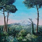 This unique and original contemporary artwork "Campagne aixoise Sainte Victoire" on the subject of Landscapes has been created by the contemporary artist Blandin Magali.