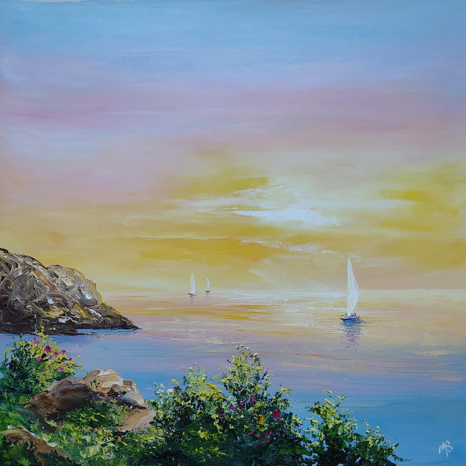 This unique and original contemporary artwork "Evasion heureuse" on the subject of Landscapes has been created by the contemporary artist Blandin Magali.