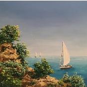 This unique and original contemporary artwork "Vers les criques" on the subject of Landscapes has been created by the contemporary artist Blandin Magali.