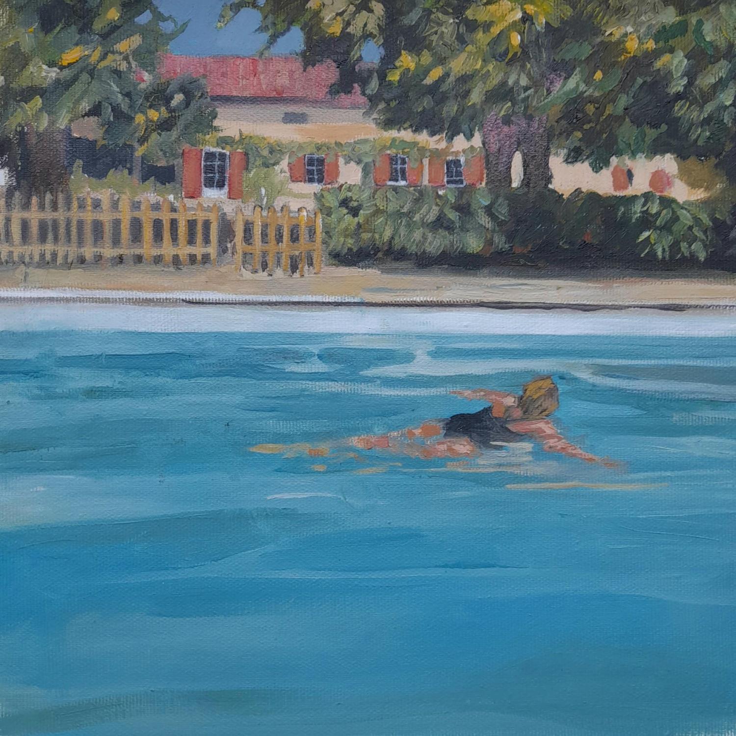 Painting Piscine à la campagne  by Lorene Perez | Painting Figurative Life style Oil