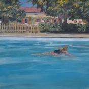 Piscine à la campagne Painting Piscine à la campagne  by Lorene Perez | Painting Figurative Life style Oil