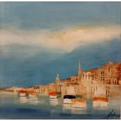 This unique and original contemporary artwork "Les deux bateaux jaunes" on the subject of Marine has been created by the contemporary artist Héraud Alain.
