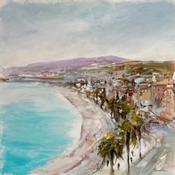 This unique and original contemporary artwork "la promenade des anglais" on the subject of Marine has been created by the contemporary artist Poumelin Richard.