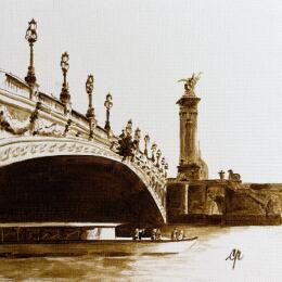 This unique and original contemporary artwork "Au fil de la ville lumière" on the subjects of Landscapes, Urban has been created by the contemporary artist Poulain Clément.