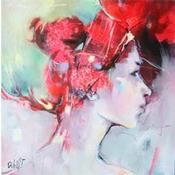 Anne Dubost is an award-winning French artist who enjoys capturing in her paintings people's fragility, determination, sensuality, as well as their transience. To find Anne Dubost's true intention one must read between the lines. The suggestion is indeed at the heart of her process, which spreads colours and textures in order to envelope the subjects with a halo. These circular movements, present in the paintings, lead the artist's characters in a dance that exacerbates the spinning palette, its tonalities and the contrasts packed with energy. A luminous work that contains all the vibrations of the world or, in the words of Régis Broustet, "a palette of spinning colours, much like a bouquet of fireworks".
