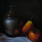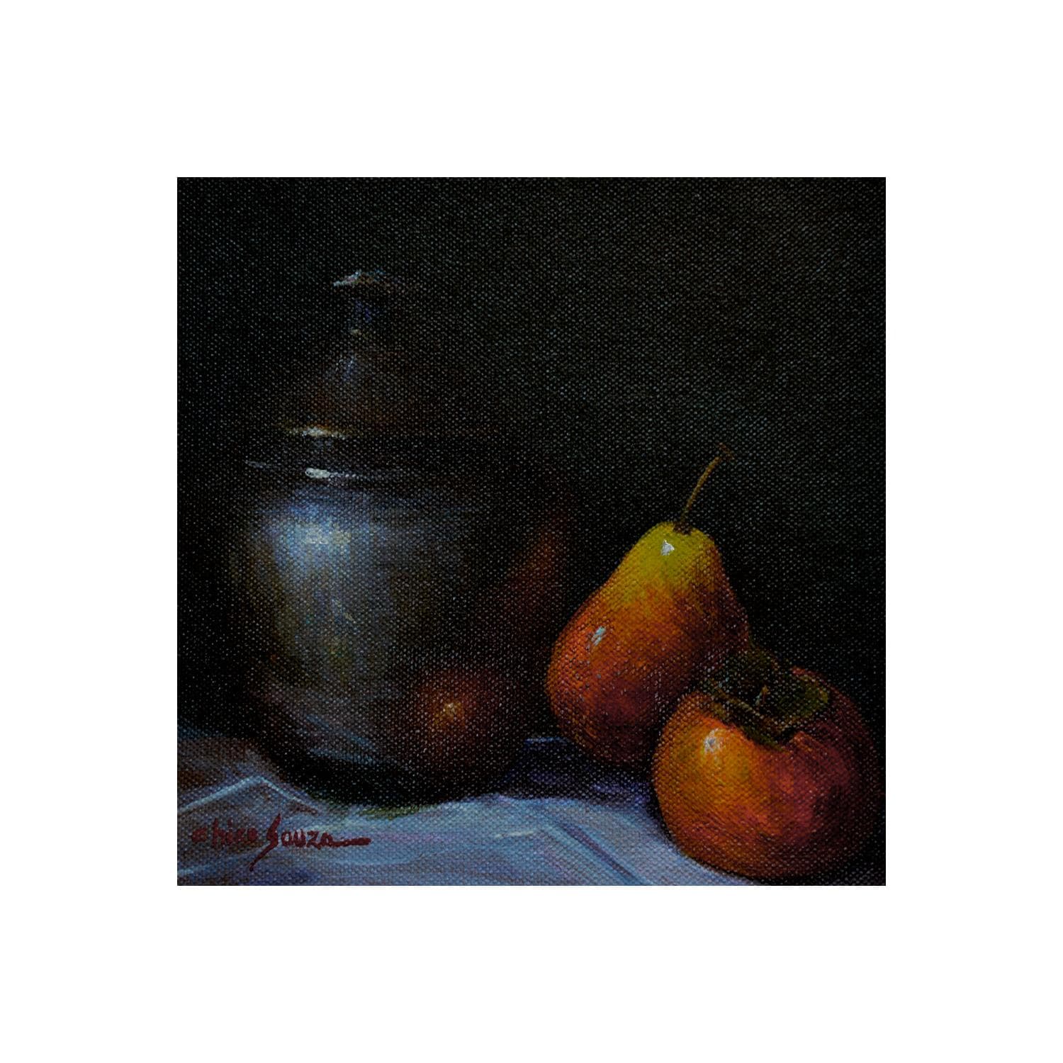 Painting Pear and silver by Chico Souza | Painting Figurative Still-life Oil