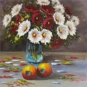 petalas sobre a mesaPainting petalas sobre a mesa by Chico Souza | Painting Figurative Still-life Oil