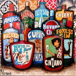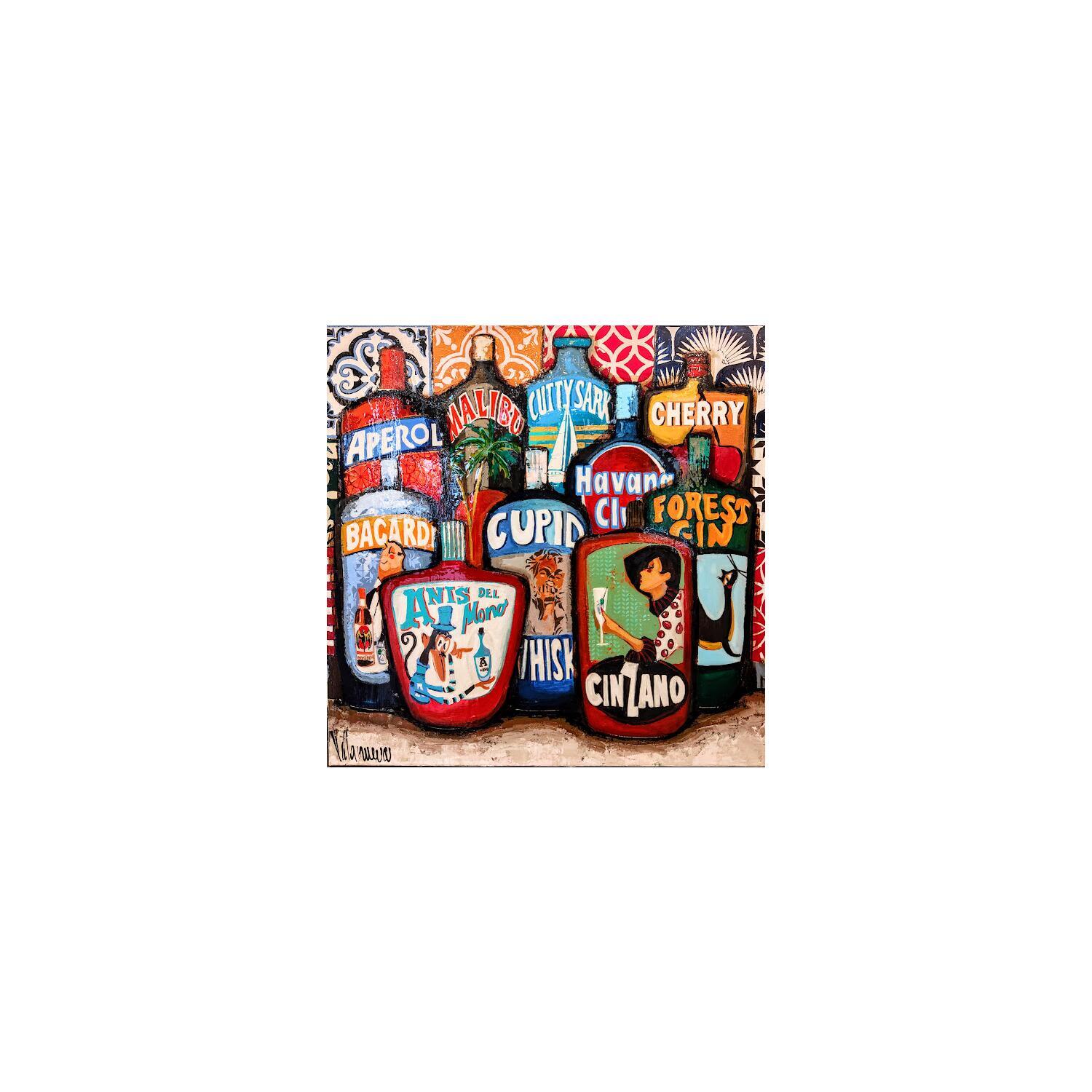 This unique and original contemporary artwork "Bodega llena" on the subject of Still-life has been created by the contemporary artist Villanueva Puigdelliura Natalia.