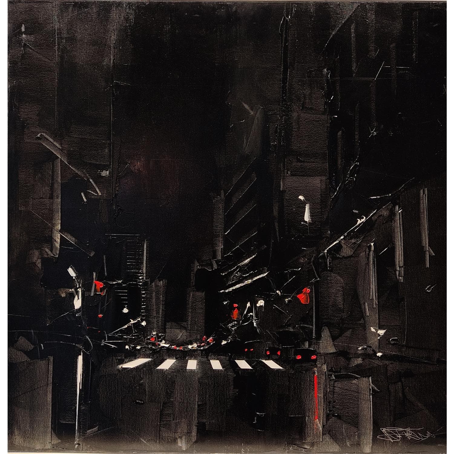 Daniel Castan has conserved his working discipline, a taste for urgent situations and a passion for megalopolises from his first career path as a graphic designer. It was during this time that Daniel travelled extensively in New York and Hong Kong and developed a fascination with the urban world and its larger-than-life perspectives, and now he recreates these graphic ambiances in his painting. A graduate in fine arts, he finally decided in his forties to satisfy his need to create. Not worrying about useless reflections, Daniel Castan maintains a relationship marked by physicality in his paintings. His perspective is one of a distance runner who trains for many hours a day and obstinately moves forward. Only colour and the material count for him and he effectively maintains a power relationship with the canvas: he never waits for an illusionary inspiration, his works are born out of work and perseverance.