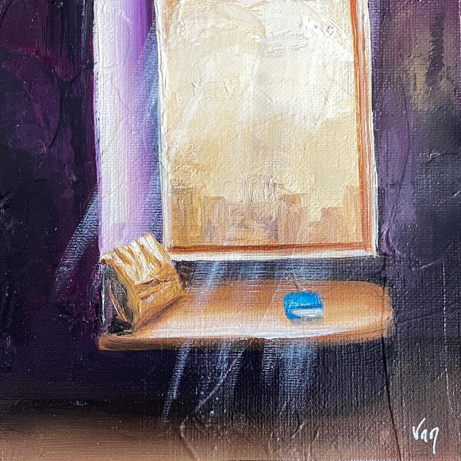 The artist used the Oil technique to create this small-format painting on Canvas in the Figurative style.