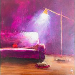 The French artist Virginie Mézan de Malartic qualifies her creation as "painting of beings" as the contrasts modelled on man occupy an important position. Exploring natural or artificial light, playing with areas of shadow and light, allows the artist to update a panel of emotions and feelings. Fly-on-the-wall, the characters that make up her paintings find themselves frozen in a moment, as if suspended outside of time, interrupting their course and leaving a place for reflection and introspection. Virginie Mézan de Malartic invokes in her practice a form of verticality that symbolises the necessity for everyone to distance themselves from their environment, their existence and their world.