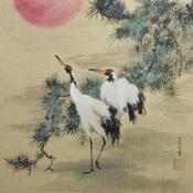 This unique and original contemporary artwork "Cranes and sunrise" was created by contemporary artist Du Mingxuan.