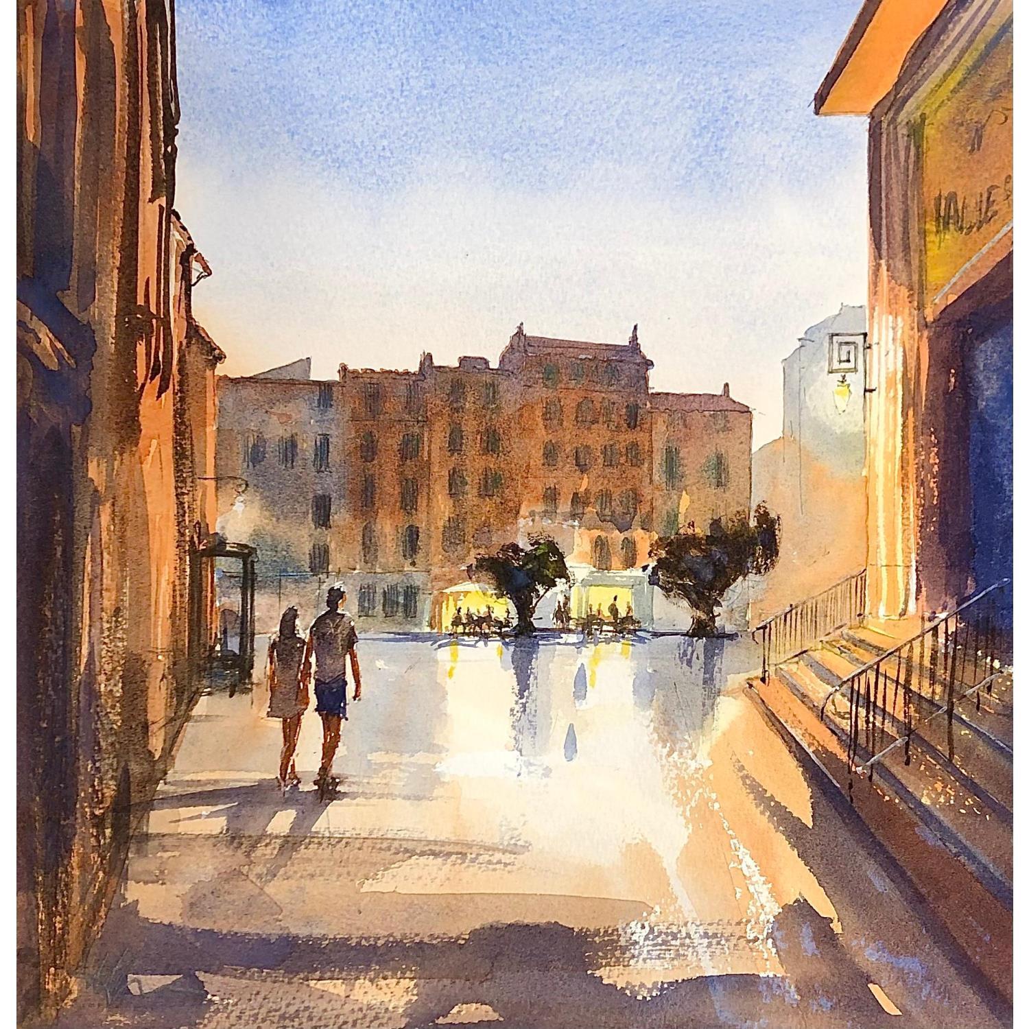 Painting Place Vincent Raspail, Toulon by Jones Henry | Painting Figurative Watercolor