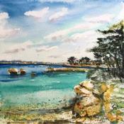The artist used a watercolor technique to create this small-format painting on paper in a figurative style on the theme of the sea.
