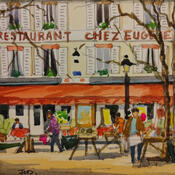 This unique and original contemporary artwork "Chez Eugène à Montmartre" on the subject of Urban has been created by the contemporary artist Decoudun Jean charles.