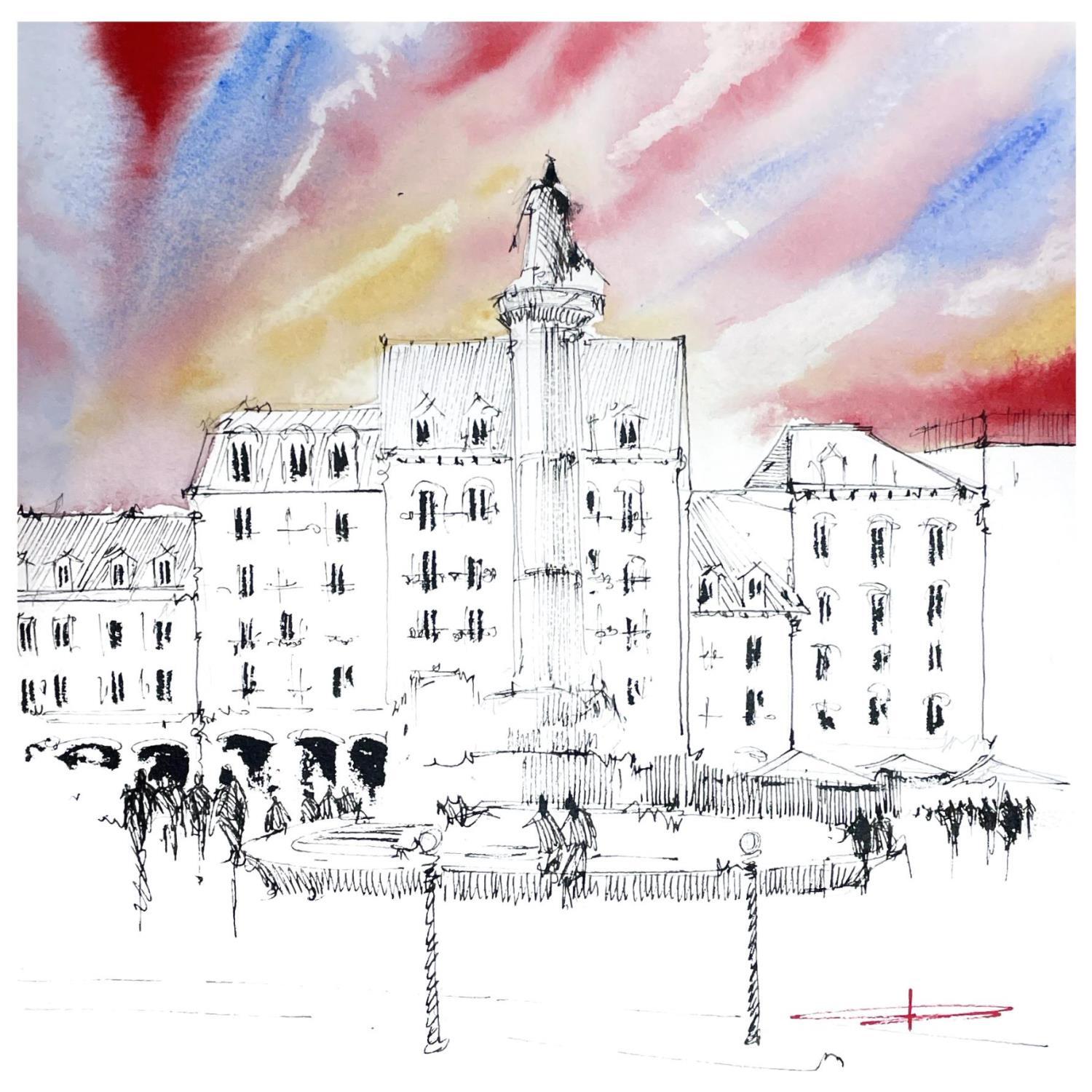 This unique and original contemporary artwork "Place de lumière" on the subjects of Urban, Architecture has been created by the contemporary artist Bailly Kévin .
