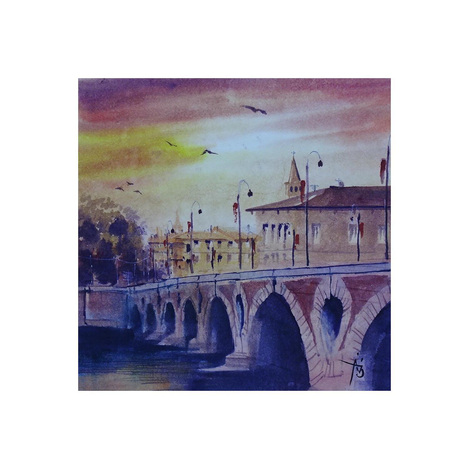 Painting Purple Bridge by Abbatucci Violaine | Painting Figurative Watercolor
