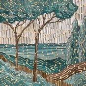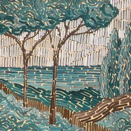 This unique and original contemporary artwork "Blue landscape" on the subjects of Marine, Nature, Landscapes has been created by the contemporary artist Dmitrieva Daria.