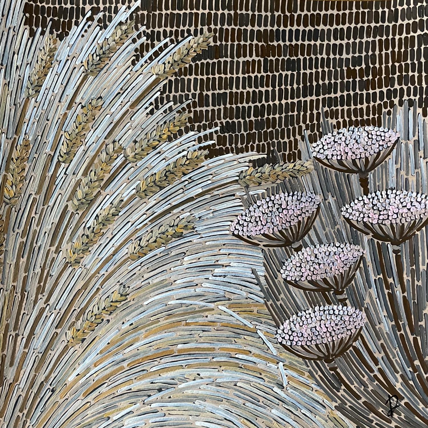 Daria Dmitrieva is an artist trained in the fine arts in Russia, specializing in textile design and tapestry techniques. Her works, often compared to embroideries, are characterized by meticulous attention to detail and nuance. Inspired by nature in all its forms, she seeks to convey emotions of happiness, harmony and tranquility through her creations. Daria adopts a technique akin to pointillism, using small strokes to capture the ephemeral beauty of landscapes and plants.