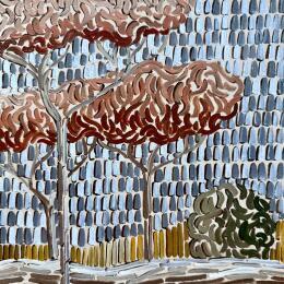 Daria Dmitrieva is an artist trained in the fine arts in Russia, specializing in textile design and tapestry techniques. Her works, often compared to embroideries, are characterized by meticulous attention to detail and nuance. Inspired by nature in all its forms, she seeks to convey emotions of happiness, harmony and tranquility through her creations. Daria adopts a technique akin to pointillism, using small strokes to capture the ephemeral beauty of landscapes and plants.